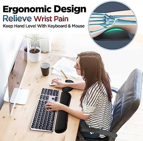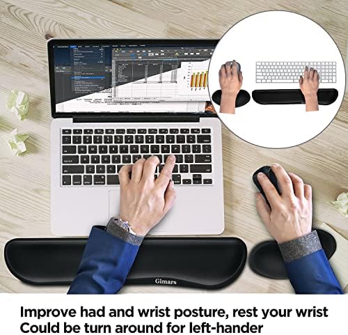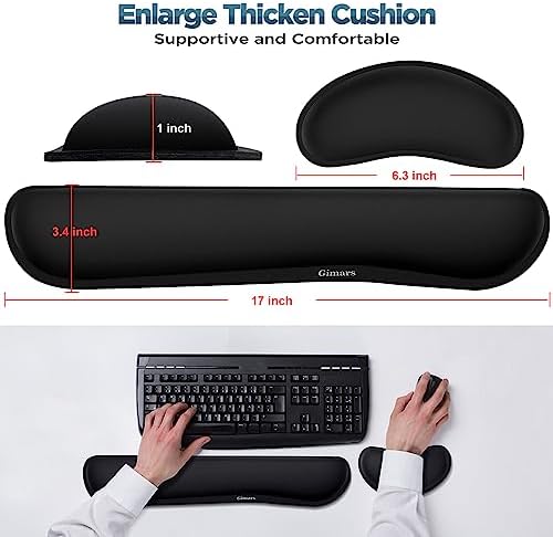Say goodbye to sore wrists and hello to increased productivity and comfort with the Gimars Upgrade Enlarge Gel Memory Foam Set Keyboard Wrist Rest Pad and Mouse Wrist Cushion Support.